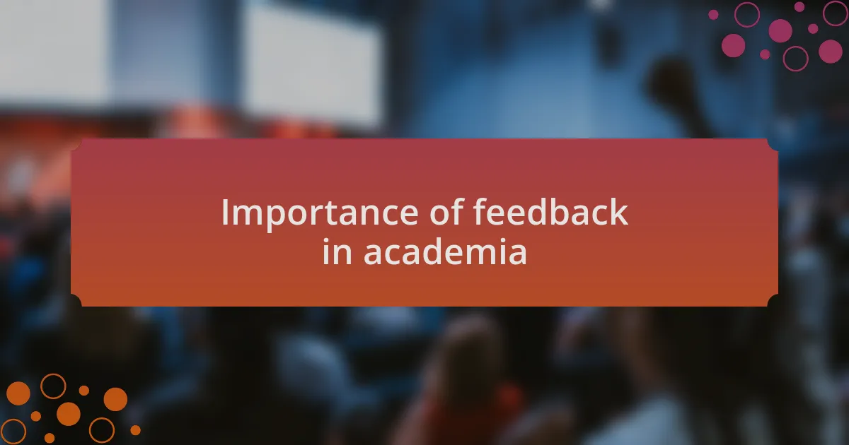 Feedback in academia is not just a casual exchange; it serves as a cornerstone for academic growth and innovation. In my journey, I’ve witnessed firsthand how timely feedback can turn a struggling project into a successful one. Just last semester, a professor offered pointed feedback on my research paper that, while hard to hear initially, allowed me to recognize blind spots and enhance my arguments significantly. Have you ever received feedback that changed your perspective completely?